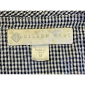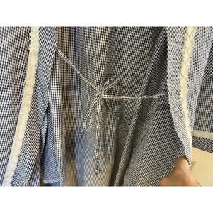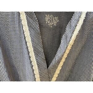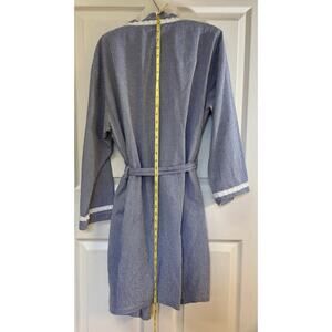 EILEEN WEST BLUE WHITE Gingham CHECK Lightweight SHORT Womens M WRAP ROBE