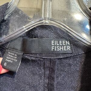 EILEEN FISHER Dapple Gray Rumpled Linen Jacket blazer Washed Navy 6