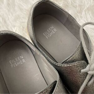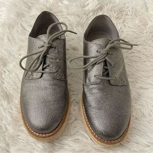 EILEEN FISHER Everly Derby Metallic Silver Leather Laceup Platform sneakers sz 6