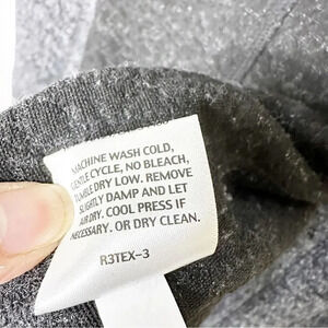 Comfy cozy tunic length and legging friendly long sleeve full zip hoodie in neutral gray color. Two pockets in front.