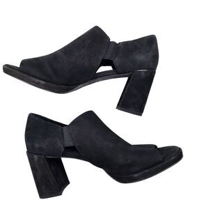 EILEEN FISHER Womens 8 Suede Cut Out Peep Toe Heeled Shoes NWOT Black Pull On