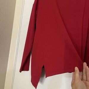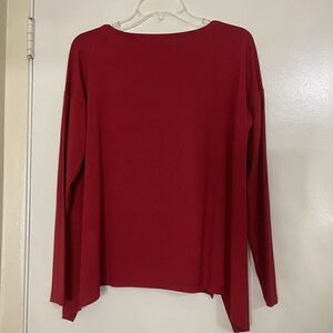 EILEEN FISHER red pullover split hem knit long sleeve top size Small