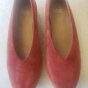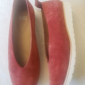 Eileen Fisher rust colored suede slip on sneakers with white soles/ Excellent clean used condition
