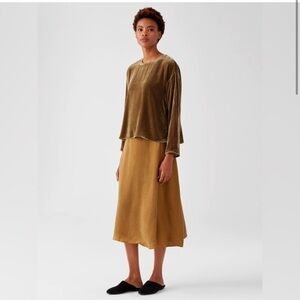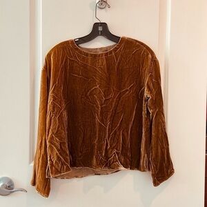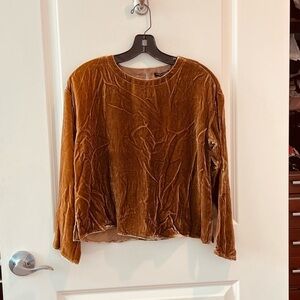 A shimmering box-top that moves effortlessly from day to night. With a keyhole back closure and bracelet sleeves. Soft and luxurious in our responsibly dyed velvet with a touch of silk.