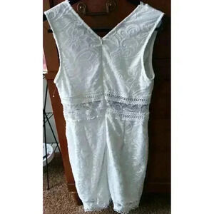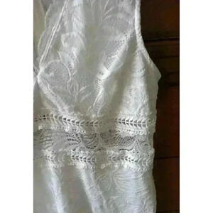 "EILLY BAZAR" WhiteLace Dress Medium Sheath Sleeveless V Neck Crochet Overlay