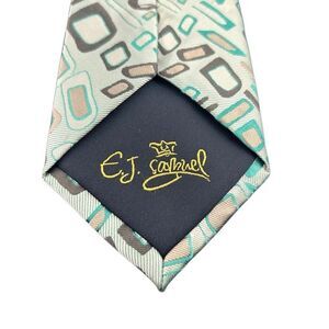 E.J. Samuel Green and Tan Geometric Microfiber Tie