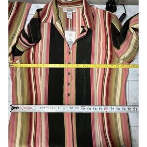 EK Designs Top Women's L Striped Long Sleeve Button Down 70s’ Style Retro*Flaw