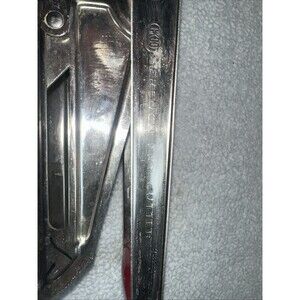 The EKCO French Fry Cutter Maker is a vintage kitchen gadget made in the United States. This chrome-plated with red handle potato cutter is designed to create perfect French fries quickly and easily. Its sleek silver color adds a touch of retro charm to any kitchen. Perfect for making delicious vegetable snacks, this EKCO cutter is a practical and stylish addition to your kitchen tools and gadgets collection.