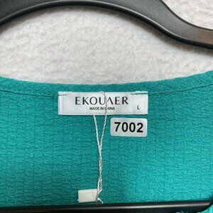 EKOUAER Blouse Womens L Teal Long Sleeve Button Front NWT