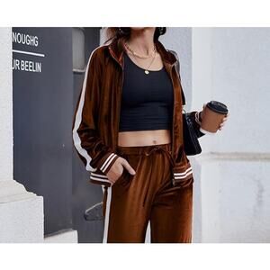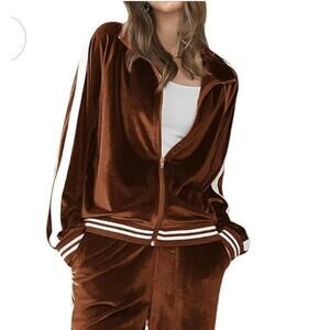 EKOUAER Velour Full Zip Track Jacket Retro Brown with Cream Stripes Size Small