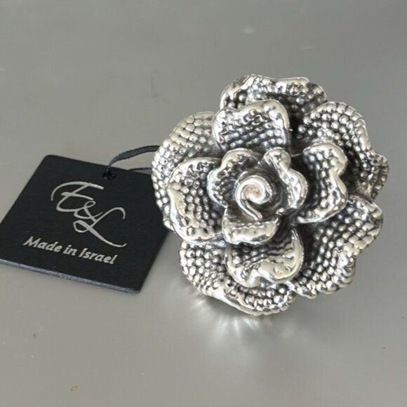 E&L Israel Sterling Silver Flower Rose Ring