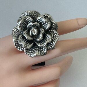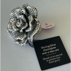 E&L Israel Sterling Silver Statement Flower Electroform Rose Ring Sz.8