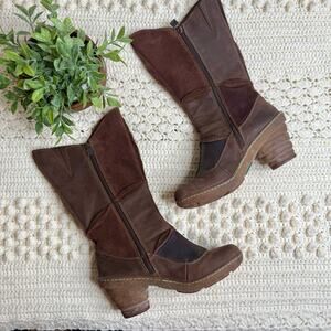 EL NATURALISTA Women's 39 US 8 Hippie Patchwork Suede Leather Heeled Boot Brown