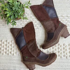 - EL NATURALISTA Women's 39 US 8 Hippie Patchwork Suede Leather Heeled Boot Brown -