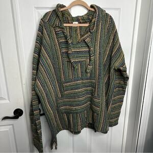 EL PASO SADDLE BLANKET CO XXL Baja Hoodie Mexican Pullover Surfer Hippie Sweater