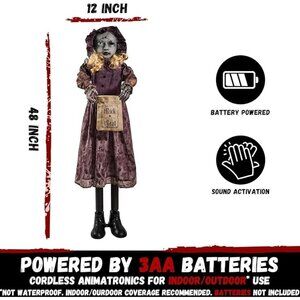 ELAMAS 4 ft Animatronic Halloween Doll With Double Face Glowing Red Eyes