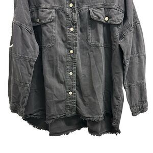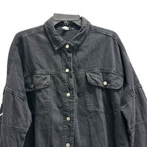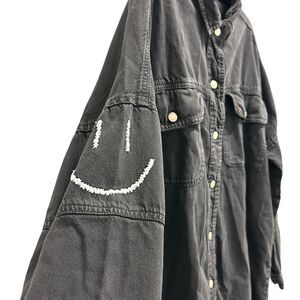 ELAN Dolly Smiley Face Y2K Button Up Shacket Shirt Jacket Denim Black Size Large