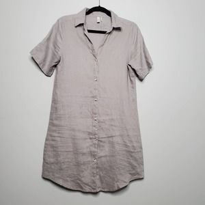 ELAN Grey Short Linen Sleeve Button Front Collared Mini Shirt Dress Sz Small S
