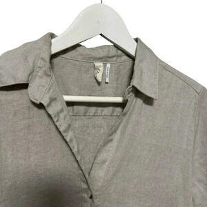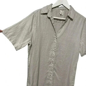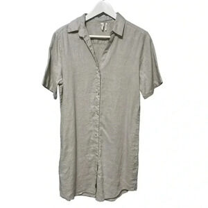 ELAN Linen Beachy Gray Collar Lagenlook Knee Length Button Front Dress Small