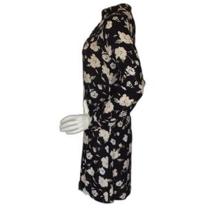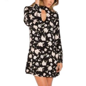 ELAN Mini Dress, S, Black/Off-White Floral, Long sleeves, Choker/Keyhole