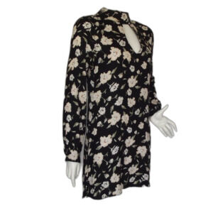 ELAN Mini Dress, S, Black/Off-White Floral, Long sleeves, Choker/Keyhole