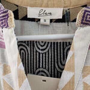 ELAN NWT Boho Babydoll Dress Small Geo Print 3/4 Sleeve Multicolor