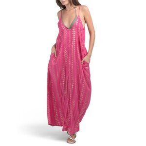 ELAN Pink/gold Spaghetti Straps Cover-up Maxi Dress