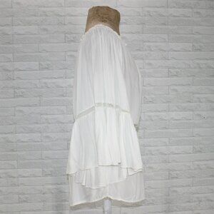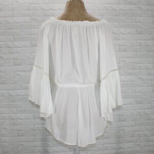 ELAN Romper Shorts Oversized Summer Bell Sleeve Festival Beach Ruffle White SM