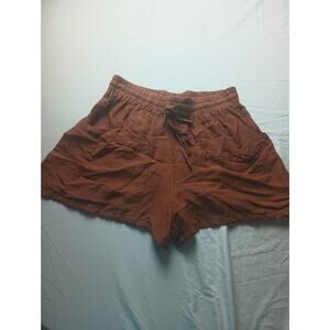 ELAN Shorts Womens Medium Orange Pull On Linen Blend High Waisted Pockets
