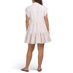 1 chest pocket, 2 side pockets, tiered skirt, seersucker texture, fixed rolled cuffs, fully lined