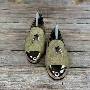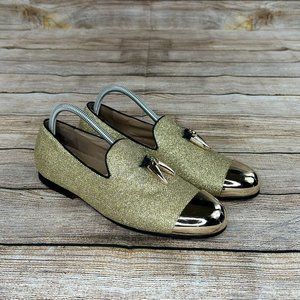 ELANROMAN CapToe Dress Shoes Men Size 7 Slip On Tasseled Loafers - Gold