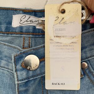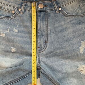 ELAN blue denim high rise slightly distressed shorts. Size L