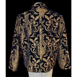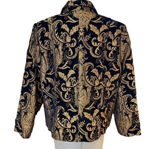 Beautiful black & gold tapestry jacket by ELCC. Plus size 1X. 2-button front, long sleeves, lined.