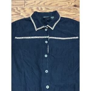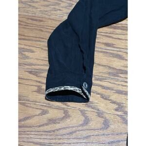 ELCC Women's Black Long Sleeve Button Up Shirt Top w/ Cheetah Print Trim, Sz L