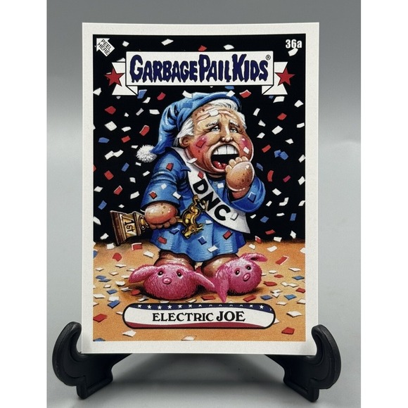 This rare collectible features Joe, the Garbage Pail Kids' character, in his race to the White House, depicted in vivid colors and a striking design. The card is a non-sport trading card manufactured by Topps in 2020 and is part of the GPK Disg-Race To The White House set. It is a parallel/variety card in white and has the card number 36, making it a unique addition to any collector's set.