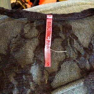 So cute, Sheer ELECTRIC PINK BLACKLACE BABYDOLL LINGERIE TOP Sz Small