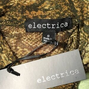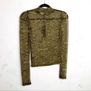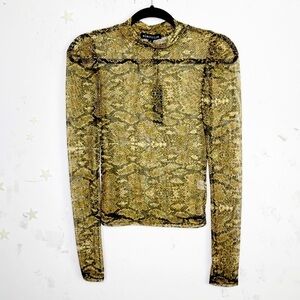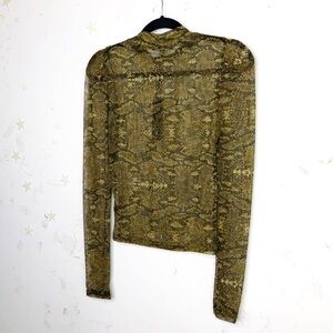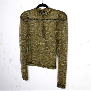 Electricra animal print Sheer mock neck puff sleeve blouse.