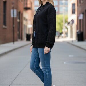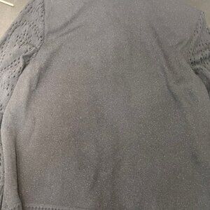 ELEGANT LUXURY METALLIC BLACK OPEN KNIT ST JOHN COUTURE EVE BLACK KNIT JACKET XL