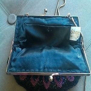 BEAUTIFUL BEADED BAG PURPLE/BLUE BLACK EXQUISITE BEADS BY SHAR MARK OF LAS VEGAS EXCELLENT CONDITION