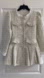 Stylish cream tweed dress featuring gold button accents. Perfect for a sophisticated look.