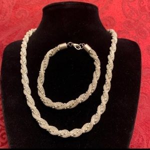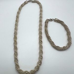 ELEGANT Twisted Rope Chain/Gold Colored Beaded Necklace and Bracelet Set