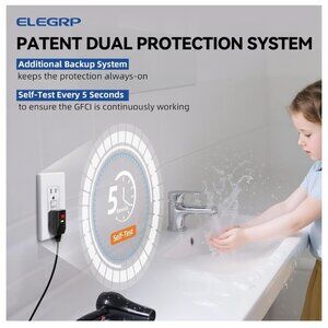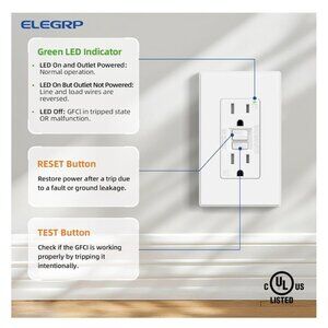 ELEGRP GFCI Outlet 15 Amp, Self-Test GFI Electrical Outlet with Thinner Design