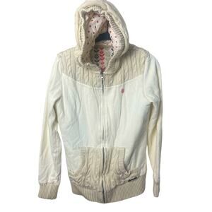 ELEMENT Cable Knit Hooded Sweater Jacket Polka Dot Lined Quilted Interior, M