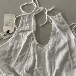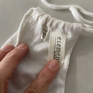 The product is an Element brand romper for women in size M. It is a white one-piece romper with a crochet neckline, giving it a stylish and elegant look. The romper is new with tags and priced at $45. This romper is perfect for a casual day out or can be dressed up for a special occasion, making it a versatile and chic addition to any woman's wardrobe.