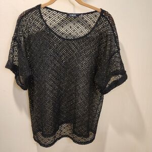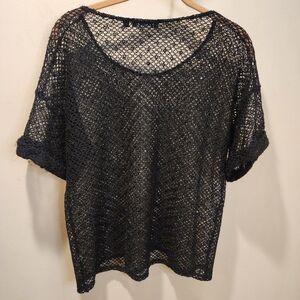 ELEMENTZ Black Crochet Sequins Short Sleeves Top size M