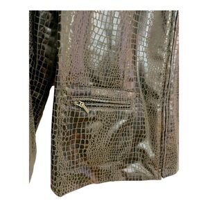 ELEMENTZ Croc Jacket Brown Black Womans size L Fully Lined Embossed Snake
