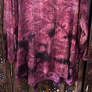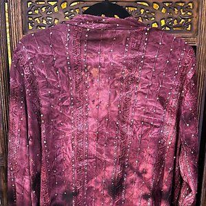 ELEMENTZ RUBY RED MAROON CRANBERRY DOUBLE SHIRT BLOUSE W/ MULTICOLOR SEQUINS 2X