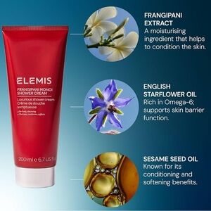 Elemis Spathome Frangipani Monoi Shower Cream, Body Exotics 6.8 Fl oz. An intense lathering body wash that deep cleans without stripping natural oils from your skin! The coconut oil keeps the skin's texture feeling soft, supple and replenished for days after just one day use.