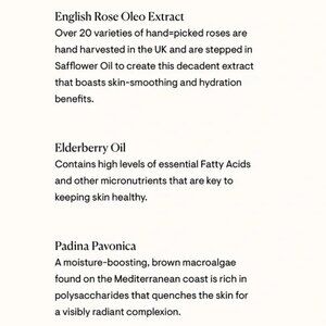 Packed with nourishing plant oils, Elderberry, Optimega™ and Bee Friendly Starflower oil, and algae Padina Pavonica, leaving skin feeling soft, hydrated, and glowing.