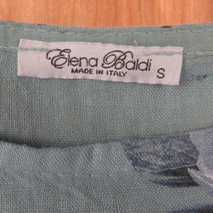 ELENA BALDI Linen Floral Print Flutter Sleeve Blouse Size S Relaxed Fit Boxy Top